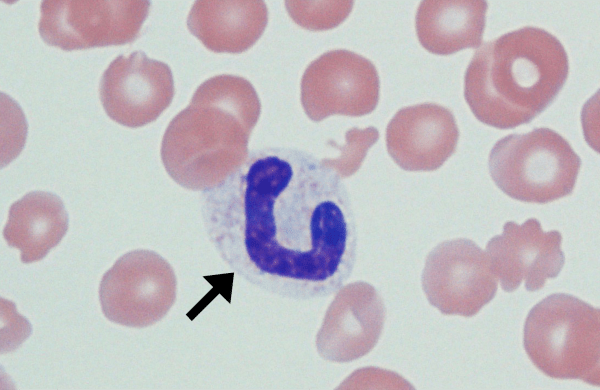 Morphology: bands are immature neutrophils with an unsegmented horseshoe-shaped nucleus. Commonly seen with: toxic change Clinical relevance: left shift (↑ bands in peripheral blood) indicates inflammation. Left shift is more pronounced… Read more Bands (Left Shift) →